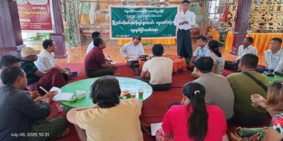 စားသုံးသူရေးရာဦးစီးဌာန တောင်ငူခရိုင်ဦးစီးမှူး ဦးမျိုးအောင်သည် ဇူလိုင်လ ၆ ရက်နေ့ နံနက်ပိုင်းက ရေတာရှည်မြို့ ဓါတ်တော်ဘုရားဓမ္မာရုံ၌ ကျင်းပပြုလုပ်သည့် ရေတာရှည်မြို့နယ် ဆန်စက်လုပ်ငန်းရှင်များအသင်း အမှုဆောင်အဖွဲ့(၂၀၂၅-၂၀၂၈ခုနှစ်) ရွေးချယ်တင်မြှောက်ပွဲ အခမ်း အနား သို့ တက်ရောက်အမှာစကားပြောကြားပါသည်။