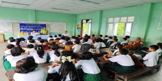 စားသုံးသူရေးရာဦးစီးဌာန၊ တောင်ငူခရိုင်၊ တောင်ငူမြို့နယ်တာဝန်ခံ ဦးမြင့်သူသည် ဇူလိုင် လ (၇) ရက်နေ့ မွန်းလွဲပိုင်းက တောင်ငူမြို့နယ်၊ ရွေလေးအင်းကျေးရွာရှိ အခြေခံပညာ မူလတန်းလွန် ကျောင်း၌ ကျောင်းသားကျောင်းသူများအား စားသုံးသူကာကွယ်ရေးဆိုင်ရာ သိကောင်းစရာများကို အသိပညာပေးဟောပြောခဲ့ပါသည်။