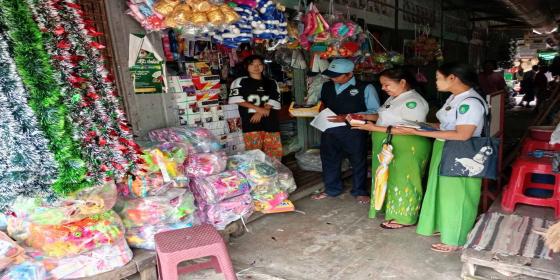 ဧရာဝတီတိုင်းဒေသကြီး၊ ဖျာပုံခရိုင်၊ကျိုက်လတ်မြို့နယ်စားသုံးသူရေးရာဦးစီးဌာနမှ စစ်ဆေးရေးအရာရှိ ဦးမိုးမင်းသန်းနှင့် ဝန်ထမ်းတို့သည် စည်ပင်သာယာရေးအဖွဲ့နှင့် ပူးပေါင်း၍ (၁၈.၁၁.၂၀၂၅) ရက်၊ နံနက် (၁၁:၀၀) နာရီ အချိန်တွင် မြို့မဈေးကြီးအတွင်းရှိ “ရူပါနွေး”၊ “မိုးကောင်းကင်”၊ “ထူးကြီး” စတိုးဆိုင်များတွင် ရောင်းချနေသော ကလေးတက