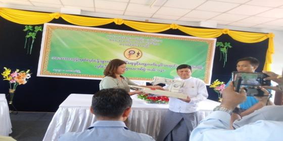 အသေးစားကုန်ထုတ်လုပ်ငန်းများဖန်တီးပေးနိုင်ရေးနှင့် မိသားစုဝင်ငွေတိုးရေးစီမံကိန်း လုပ်ငန်းသုံးပစ္စည်းများပေးအပ်ပွဲ အခမ်းအနားအား တိုင်းဒေသကြီးစားသုံးသူရေးရာဦးစီးဌာနမှ တက်ရောက်