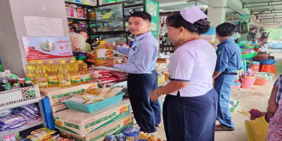 ကျိုက်မရောမြို့ပေါ်ရှိ ကုန်စုံဆိုင်များတွင် ဖြန့်ဖြူးရောင်းချနေသော စားသုံးဆီအရောင်းဆိုင်များသို့ ကွင်းဆင်းစစ်ဆေး