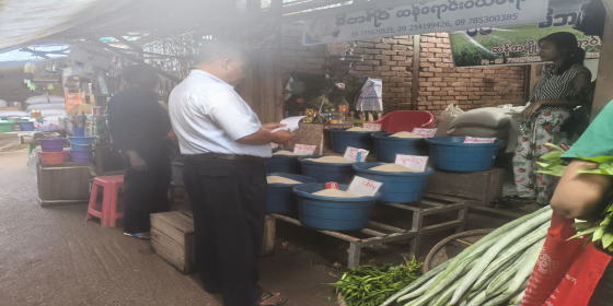စားသုံးသူရေးရာဦးစီးဌာန၊ မကွေးခရိုင်တာဝန်ခံနှင့် ဝန်ထမ်းသည် (၆.၁.၂၀၂၆)ရက်နေ့၊ နံနက် (၀၈:၀၀)မှ(၁၀:၀၀) အချိန်ထိ မကွေးမြို့၊ မင်္ဂလာဈေးနှင့် ကန်သာစျေး၌ ရောင်းချလျက်ရှိသော ကုန်စည်များအား၊ နမူနာဝယ်ယူ၍ Mobile Lab Van ဖြင့် ရှောင်တခင်စစ်ဆေးခြင်