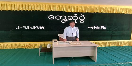 စီးပွားရေးနှင့်ကူးသန်းရောင်းဝယ်ရေးဝန်ကြီးဌာန ပြည်ထောင်စုဝန်ကြီး ဦးချစ်ဆွေသည် ယနေ့နံနက်ပိုင်းတွင် ဧရာဝတီတိုင်းဒေသကြီးဓနုဖြူမြို့ရှိ Gold Delta ဆန်စက်ရှိ ရှင်းလင်းဆောင်၌ ဌာနဆိုင်ရာတာဝန်ရှိသူများ၊