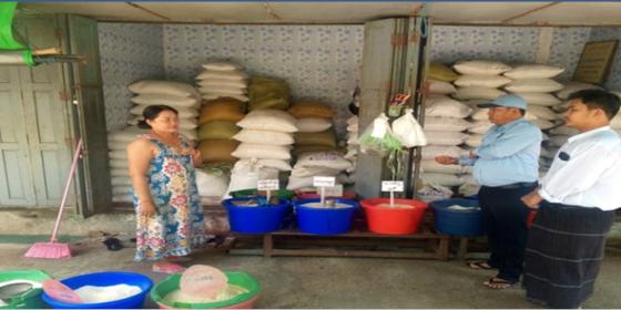 ဧရာဝတီတိုင်းဒေသကြီး၊ စားသုံးသူရေးရာဦးစီးဌာန၊ မြောင်းမြခရိုင် ဝါးခယ်မမြို့နယ်တာဝန်ခံ ဦးအောင်မိုးသည် (၃.၁၂.၂၀၂၅) ရက်နေ့၊ နံနက်(၁၀:၀၀)နာရီက မြို့နယ်စည်ပင်သာယာရေးအဖွဲ့နှင့်ပူးပေါင်း၍ရွာလည်ရပ်ကွက်ရှိ လက်လီ လက္ကား ရောင်းချနေသောဦးစိုးနိူင်ဆန်ဆိုင်အား ကွင်းဆင်းစစ်ဆေးခဲ့ပါသည်။