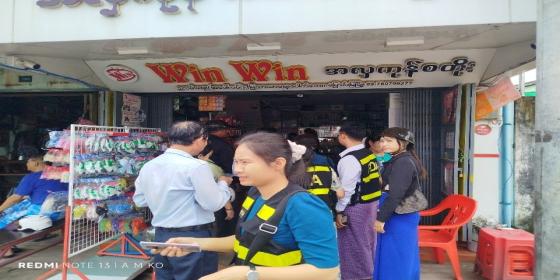 စားသုံးသူရေးရာဦးစီးဌာန၊ ရန်ကုန်အရှေ့ပိုင်းခရိုင်ရုံးမှစစ်ဆေးရေးအရာရှိ ဒေါ်အေးအေး မော် နှင့် ဝန်ထမ်းများသည် အွန်လိုင်းစနစ်ဖြင့် ရောင်းချခြင်းလုပ်ငန်းများ မှတ်ပုံတင်လက်မှတ် စိစစ်ထုတ်ပေးခြင်း၊မြေပြင်လုပ်ငန်းနှင့်မှတ်ပုံတင်ထားရှိမှု ကိုက်ညီမှု ရှိ/မရှိ၊ လုပ်ငန်းလိပ်စာ မှန်ကန်မှု ရှိ/မရှိကို (၄.၇.၂၀၂၅) ရက်နေ့ ၊ နံနက်(၁၀:၀၀)အချိန်တွင် (ရွှေဆန််းထက်) စားသောက်ကုန်ပစ္စည်းများ Online Sale လုပ်ငန်း အိမ်အမှတ်(၁၄)၊ရာဇဓိရာဇ်လမ်း၊ အမှတ်(၂) ရပ်ကွက်၊ဗိုလ်တထောင်မြို့နယ်သို့ သွားရောက်၍ Online Sale မှတ်ပ