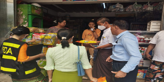 ဧရာဝတီတိုင်းဒေသကြီး၊ စားသုံးသူရေးရာဦးစီးဌာန၊ မအူပင်ခရိုင်ဦးစီးမှူးရုံး၊ ပန်းတနော်မြို့နယ် ဦးစီးမှူးမှတာဝန်ရှိသူများနှင့် ဝန်ထမ်းများသည် (၄.၇.၂၀၂၄) ရက်နေ့ (၀၉၃၀)နာရီအချိန်တွင် ဆေးဝါး ပစ္စည်းမျိုးစုံရောင်းချသော ဆိုင်(၇)ဆိုင်သို့ သွားရောက်၍ ခရိုင်အစားအသောက်နှင့် ဆေးဝါးကွပ်ကဲ ရေးဦးစီးဌာန(FDA)၊ ကျန်းမာရေးဦးစီးဌာန၊ စည်ပင်သာယာရေးအဖွဲ့တို့နှင့်အတူ ဆေးဝါးပစ္စည်း များအား ဈေးကွက်စောင့်ကြည့် ကွင်းဆင်းစစ်ဆေးခဲ့ကြပါသည်။