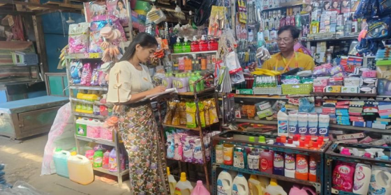 စားသုံးသူရေးရာဦးစီးဌာန၊ ရန်ကုန်အရှေ့ပိုင်းခရိုင်ဦးစီးမှူးရုံးမှ ဒေါ်သိင်္ဂီဇံ (အကြီးတန်းစာရေး)နှင့် ဝန်ထမ်းများသည် မြို့နယ်စည်ပင်သာယာရေးကော်မတီဈေးမျာ