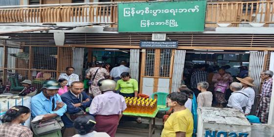 ဧရာဝတီတိုင်းဒေသကြီး၊ မြန်အောင်ခရိုင်၊ မြန်အောင်မြို့ မြန်မာ့စီးပွားရေးဘဏ်တွင် (၂၅.၁၀.၂၀၂၅)ရက်နေ့ နံနက်(၀၈:၀၀)အချိန်မှစ၍ စားသုံးသူရေးရာဦးစီးဌာနမှ မြန်အောင်မြို့နယ် ဦးစီးမှူး ဦးမြင့်အောင်၊ သက်ဆိုင်ရာဌာနဝန်ထမ်းများ၊ မြန်အောင်ခရိုင်ဆီကုန်သည်နှင့် ဆီလုပ်ငန်းရှင် များအသင်းနှင့် ပူးပေါင်း၍