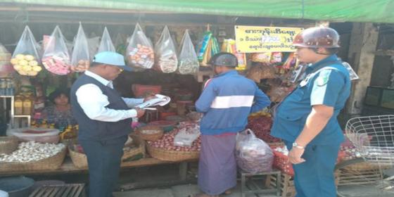 ဧရာဝတီတိုင်းဒေသကြီး၊ စားသုံးသူရေးရာဦးစီးဌာန၊ မြောင်းမြခရိုင် ဝါးခယ်မမြို့နယ် တာဝန်ခံ ဦးအောင်မိုးနှင့် ဝန်ထမ်းများသည် မြို့နယ်စည်ပင်သာယာရေးအဖွဲနှင့်ပူးပေါင်း၍ (၁၉.၈.၂၀၂၅) ရက်နေ့ နံနက်(၁၀:၃၀) အချိန်တွင် ဝါးခယ်မမြို့ပေါ်ရှိ စားအုန်းဆီရောင်းချနေသော ကုန်မျိုးစုံဆိုင်များအား သတ်မှတ်ရည်ညွှန်းဈေးနှုန်းဖြင့် ရောင်းချပေးနေခြင်း ရှိ/မရှိ ကွင်းဆင်းစစ်ဆေ