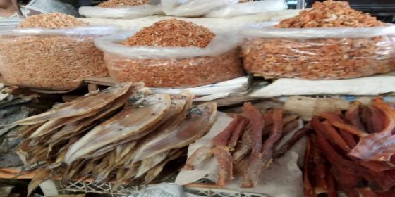မကွေးမြို့၊ မြို့မစျေး၌ရောင်းချလျက်ရှိသော ပုစွန်ခြောက်၊ ငါးခြောက်စျေးနှုန်းအခြေအနေ