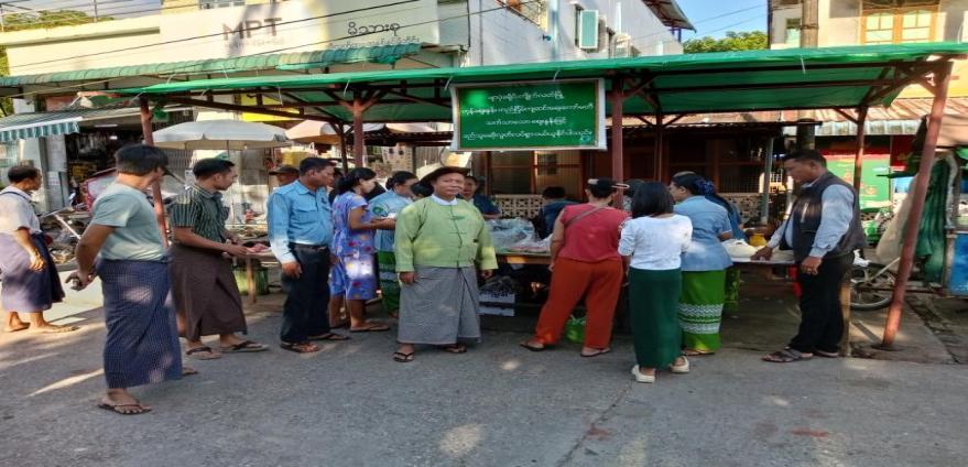 ထိုသို့ဆောင်ရွက်ရာတွင် အခြေခံစားသောက်ကုန်များ ဖြစ်သည့် ဆန်တစ်ပြည် (၂၅၀၀) ကျပ်၊ ကြက်ဥ တစ်လုံးလျှင် (၃၇၀) ကျပ်၊ စားသုံးဆီတစ်ပိဿာလျှင် (၇၂၀၀) ကျပ်၊ ဝက်သားတစ်ပိဿာလျှင် (၂၄၈၀၀) ကျပ်နှုန်းဖြင့် ရောင်းချပေးခဲ့ကြောင်း သတင်းရရှိပါသည်။