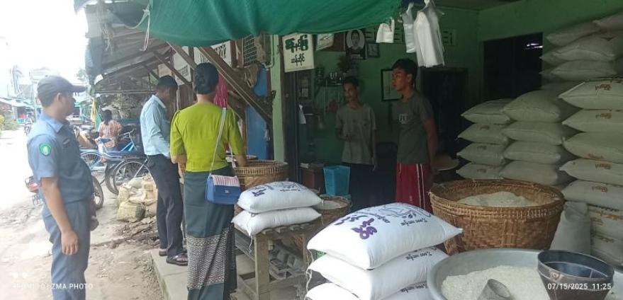ငပုတောမြို့နယ်၊ မြို့မဈေးအတွင်းရှိ ဆန်ဆိုင်များအား ဈေးကွက်စောင့်ကြည့်စစ်ဆေးခြင်း