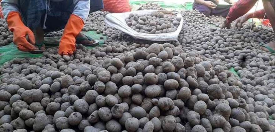 ဖျံပင်မှ တူးဖော်ရရှိသည့် ဖျံဥ အရိုင်းများကို အင်းအိုင်ချောင်းမြောင်းများတွင်လည်းကောင်း၊ ရေကန်တွင်လည်းကောင်း၊ ရွံများ၊ အမွေးအမျှင်များ ကင်းစင်အောင်ရေဖြင့် စင်ကြယ်စွာ ဆေးကြော ရပါသည်။ ဖျံဥအရိုင်းများကို အဝယ်ဒိုင်၊ အလုပ်ရုံများကို အစိမ်းလိုက်ရောင်းချပါသည်။ ရေဆေးပြီးဥ များကို အာလူးအခွံခွာသကဲ့သို့ အခွံခွာရပါသည်။ အခွံခွာပြီး ဖျံဥအရိုင်းများကို အသင့်ပြုလုပ်ထားသော ခုံပေါ်တွင် လုံးဝန်းသော ဥအဆင့်မှ ပါးလွှာသော အချပ်ကလေးများဖြစ်အောင် ပြုလုပ်ရပါသည်။ ရရှိလာသော ဖျံဥချပ်များကို မီးသွေးဖိုတွင် ကန့်(Sulpha) အနည်းငယ်ဖြူးလျက် အပူချိန် (၃၀° C) ဖြင့် (၂၄) နာရီခန့်ကြာ အခြောက်ခံအပူပေးခြင်းဖြင့် ဖျံဥခြောက် ကုန်ချောအဆင့်သို့ ရရှိပါသည်။ ဖျံဥ အစို (၉) ပိဿာလျှင် အခြောက် (၁) ပိဿာခန့်ရရှိပြီး၊ ကျွမ်းကျင်လုပ်သားဖြင့် ပြုလုပ်ပါက အစို (၈) ပိဿာလျှင် အခြောက် (၁) ပိဿာခန့် ရရှိပါသည်။ ဖျံဥခြောက်ကို အမှုန့်ပြုလုပ်၍ နိုင်ငံအတွင်း အသားတုပြုလုပ်၍ စားသောက်ုကုန်ဟင်းလျာ အမျိုးမျိုး ချက်ပြုတ်စားသောက်ကြောင်း သိရပါသည်။