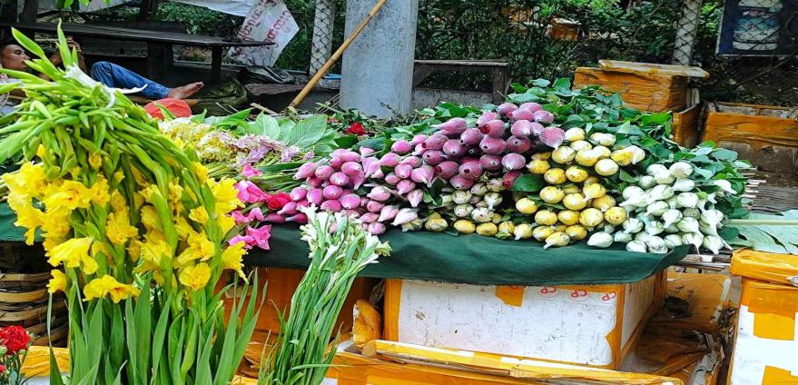 လားရှိုးမြို့ရှိ မြို့မဈေးနှင့် ရပ်ကွက်တွင်းရှိဈေးများတွင် ပန်းမျိုးစုံရောင်းချလျက်ရှိရာ၂၀၂၅ ခုနှစ်၊ နိုဝင်ဘာလ (ဒုတိယအပတ်)တွင် ဖြစ်ပေါ်နေသည့်ပန်းတစ်စီး လက်လီပေါက်စျေးနှုန်းများမှာ ဂန္ဓာမာပန်းတစ်စီးလျှင် (၆၀၀၀) ကျပ် ၊ မေမြို့ပန်းရောင်စုံတစ်စည်းလျှင် (၅၀၀၀) ကျပ်၊ သစ္စာပန်း (၅၅၀၀) ကျပ်၊ ပန်းထိမ်ငိုပန်းတစ်စည်းလျှင်(၆၀၀၀) ကျပ်၊ လီလီပန်းတစ်ခက်လျှင်(၈၀၀၀) ကျပ်၊ သပြေပန်း (၁၀၀၀) ကျပ်၊ နှင်းဆီပန်းတစ်စည်းလျှင် (၃၀၀၀) ကျပ်မှ (၅၀၀၀) ကျပ်၊ ဇော်စိမ်း တစ်စည်းလျှင် (၂၀၀၀) ကျပ်၊ စျေးဖြင့် ရောင်းချလျက်ရှိကြောင်း ဒေသခံပန်းရောင်းချသူများ ထံမှ သိရှိရပါသည်။