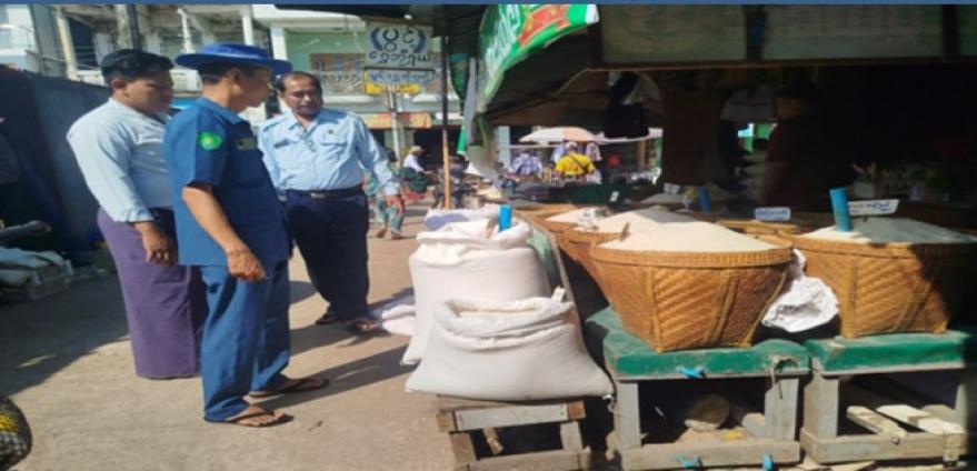 ထိုသို့ကွင်းဆင်းဆောင်ရွက်ရာတွင် စားသုံးသူရေးရာဦးစီးဌာန၊ မြို့နယ်ဦးစီးမှူးမှ လက်လီ၊ လက္ကား ရောင်းချနေသော ဆိုင်ရှင်များအား ဆန်ဈေးနှုန်းကြီးမြင့်နေမှုကို ဆိုင်ရှင်များအနေဖြင့် စားသုံးသူပြည်သူများအား ဈေးနှုန်းမြှင့်တင်ရောင်းချခြင်းမပြုကြရန် သတ်မှတ်ရည်ညွှန်းဈေးဖြင့်သာ ရောင်းချပေးရန်၊ ဆန်ဈေးနှုန်းများကို အများ ပြည်သူမြင်သာသောနေရာတွင် မြင်သာသောအရွယ်အစားဖြင့် ရေးသားဖော်ပြ၍ ရောင်းချကြရန်၊ ဆန်စပါးသိုလှောင်မှုအနေဖြင့် မြန်မာ့ဆန်စပါး အွန်လိုင်း Myanmar Rice Online (My RO) တွင် မှတ်ပုံတင်ထားခြင်းမရှိပါက သက်ဆိုင်ရာ မြို့နယ်အလိုက် စားသုံးသူ ရေးရာဦးစီးဌာနရုံးများနှင့် ချိတ်ဆက်၍ မှတ်ပုံတင်ခြင်းဆောင်ရွက်ကြရန် ဈေးကွက်အတွင်း ဈေးနှုန်း မြှင့်တင်ရောင်းချခြင်း၊ ဈေးကစားရန်ရည်ရွယ်ချက်ဖြင့် သိုလှောင်ထားခြင်းများတွေ့ရှိပါက အရေးကြီးကုန်စည်နှင့်ဝန်ဆောင်မှု ဥပဒေအရ အရေးယူ ဆောင်ရွက်သွားမည်ဖြစ်ကြောင်း ဆိုင်ရှင်များအား ရှင်းလင်းဆွေးနွေး ပြောကြားခဲ့ပါသည်။