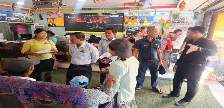 စားသုံးသူရေးရာဦးစီးဌာန၊ မြောက်ပိုင်းခရိုင်ဦးစီးမှူးရုံးမှ ဦးလှစိုး၊ ခရိုင်ဦးစီးမှူးပါ(၄)ဦးတို့သည် (၂၂.၁၂.၂၀၂၅)ရက်နေ့ နံနက်(၁၀:၀၀)မှစ၍ လှိုင်သာယာ(အနောက်ပိုင်း)မြို့နယ်ရှိ ဒဂုံဧရာအဝေးပြေးအတွင်းရှိ ခရီးသည်ပို့ဆောင်ရေးလုပ်ငန်းများသို့ ဝန်ဆောင်မှုကဏ္ဍနှင့် စပ်လျဉ်း၍ ကွင်းဆင်းစစ်ဆေးခြင်းလုပ်ငန်းများ ဆောင်ရွက်ခဲ့ပါသည်။