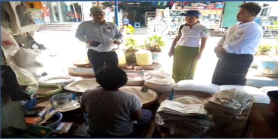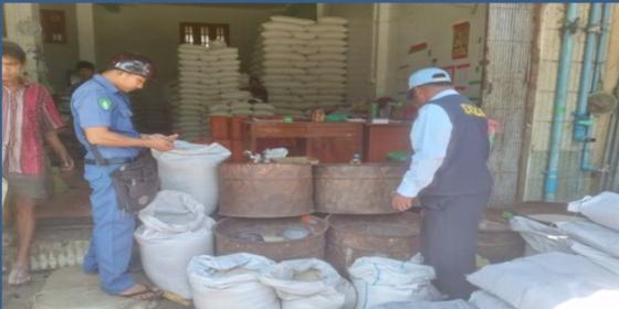 ဧရာဝတီတိုင်းဒေသကြီး၊ စားသုံးသူရေးရာဦးစီးဌာန၊ မြောင်းမြခရိုင် ဝါးခယ်မမြို့နယ်တာဝန်ခံ ဦးအောင်မိုးသည် (၁၈.၁၁.၂၀၂၅) ရက်နေ့၊ နံနက်(၉;၃၀)နာရီက မြို့နယ်စည်ပင်သာယာရေးအဖွဲ့နှင့်ပူးပေါင်း၍ ဈေးရပ်ကွက်ရှိ လက်လီ လက္ကား ရောင်းချနေသောဝင်းဌေးဆန်ဆိုင်အား ကွင်းဆင်းစစ်ဆေးခဲ့ပါသည်။