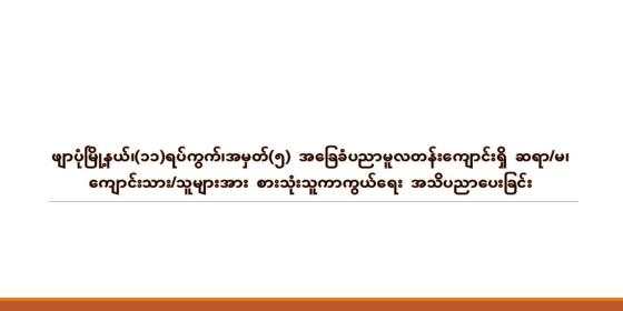 စားသုံးသူအခွင့်အရေး နှင့် အထွေထွေအချက်အလက်များ