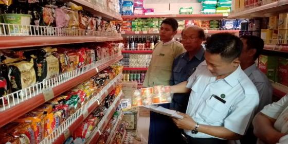 မုဒုံမြို့နယ်ရှိ ကုန်စုံဆိုင်နှင့်စတိုးဆိုင်များတွင် ခေါက်ဆွဲခြောက်အမျိုးမျိုးအား ဈေးကွက်စောင့်ကြည့်စစ်ဆေး