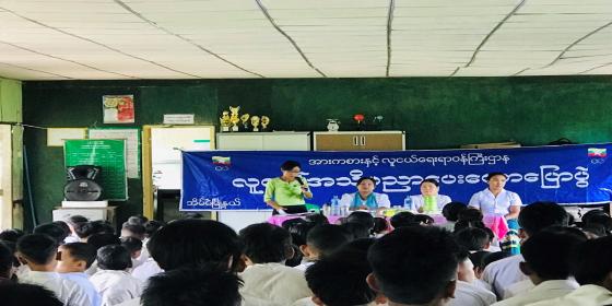 ကံမမြို့၊ ခြောက်ပင်ကျေးရွာ အခြေခံပညာအထက်တန်းကျောင်း(ခွဲ)၌ ကျောင်းသား/ ကျောင်းသူများအား အသိပညာပေးဟောပြောပွဲဆောင်ရွက်