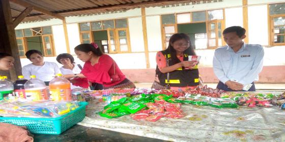 ကရင်ပြည်နယ်၊ ဘားအံမြို့၊ ပညာရေးကောလိပ်ကျောင်းဝန်းအတွင်း ရောင်းချနေသော မုန့်ဈေးတန်းများအား ကွင်းဆင်းစစ်ဆေး
