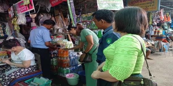 လေးမျက်နှာမြို့နယ်၊ အိုင်သပြုရပ်ကွက်ရှိ မုန့်မျိုးစုံဆိုင်များတွင် ဈေးကွက်စောင့်ကြည့်စစ်ဆေး