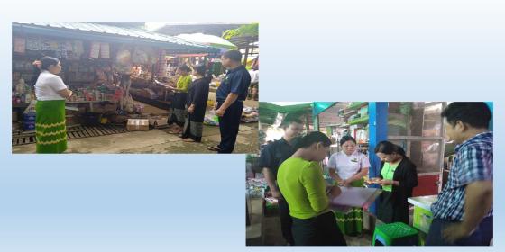 ဂန့်ဂေါမြို့မဈေးအတွင်းရှိ အလှကုန်ပစ္စည်းများရောင်းချသည့် ဆိုင်များသို့ ဈေးကွက်စောင့်ကြည့်စစ်ဆေး