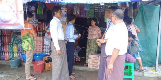 မြေပုံမြို့နယ်၌ဈေးကွက်စောင့်ကြည့်စစ်ဆေးရေးအဖွဲ့သည် ဈေးကွက်အတွင်းရှိ ကလေးအာဟာရ ဖြည့်စွက်စာအမျိုးမျိုးရောင်းချနေမှုအား ကွင်းဆင်းစစ်ဆေး