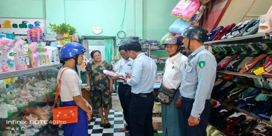 ဧရာဝတီတိုင်းဒေသကြီး၊ ဖျာပုံခရိုင်၊ စားသုံးသူရေးရာဦးစီးဌာနမှ ဒုခရိုင်ဦးစီးမှူးဦးဆောင်၍ ဝန်ထမ်းများနှင့်အတူ မြို့နယ်စည်ပင်သာယာရေး၊ မြို့နယ်ကျမ်းမာရေးဦးစီးဌာနတို့ ပူးပေါင်း၍ ၂၀၂၅ခုနှစ်၊ နိုဝင်ဘာလ (၁၉)ရက်နေ့တွင် ဖျာပုံမြို့နယ်၊ ဒုတိယလမ်းရှိ “ဘေဘီဖက်ရှင်”ကလေးအသုံးအဆောင်ပစ္စည်းအရောင်းဆိုင်နှင့် မ