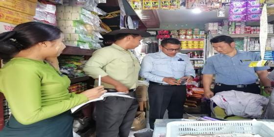 စားသုံးသူရေးရာဦးစီးဌာန၊ မြစ်ကြီးနားခရိုင်ဦးစီးမှူးရုံးမှ စစ်ဆေးရေးမှူး ဦးဇေယျာအောင် (လက်ထောက်ညွှန်ကြားရေးမှူး) ဦးဆောင်၍ ဒေါ်သီတာဖြိုး (အကြီးတန်းစာရေး)နှင့် ဦးရဲဟိန်းထက် (နေ့စား)တို့သည် ၁၀-၄-၂၀၂၆ရက်နေ့ (၁၀း၀၀)နာရီ အချိန်တွင် မြစ်ကြီးနားမြို့၊ ရွှေညောင်ပင်ရပ်ကွက် အတွင်းရှိ လက်လီ/လက်ကား ဖြန့်ဖြ