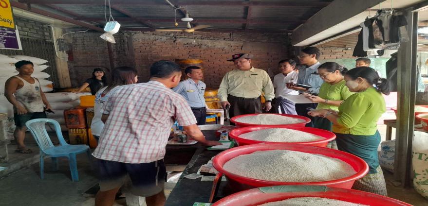 ထိုသို့ကွင်းဆင်းစစ်ဆေးခဲ့ရာတွင် လက်လီ/ လက်ကားရောင်းချနေသော ဆန်များအနေဖြင့် ဈေးကစားရန် ရည်ရွယ်ချက်ဖြင့် ဆန်များသိုလှောင်ထားခြင်းမပြုလုပ်ကြစေရန်၊ သတ်မှတ်ထားသည့် သင့်တင့်မျှတသော ဈေးနှုန်းများဖြင့် ရောင်းချနိုင်ရန်နှင့် ဈေးနှုန်းများကို အများပြည်သူမြင်သာသောနေရာတွင် မြင်သာသည့်အရွယ်အစားနှင့် ရေးသားဖော်ပြ၍ ရောင်းချရန်၊ မြန်မာဆန်စပါးအွန်လိုင်း (Myanmar Rice Online) MyRo တွင် မှတ်ပုံတင်ထားခြင်းရှိ/ မရှိနှင့် မှတ်ပုံတင်ထားခြင်းမရှိပါက သက်ဆိုင်ရာမြို့နယ်အလိုက် စားသုံးသူရေဂရာဦးစီးဌာနရုံးများနှင့်ချိတ်ဆက်၍ မှတ်ပုံတင်ခြင်း ဆောင်ရွက်နိုင်ရေးတို့ကို အသိပညာပေးကာ အလေးချိန်ပြည့်ဝမှန်ကန်စွာ ရောင်းချခြင်းရှိ/ မရှိ ကွင်းဆင်းစစ်ဆေးခြင်း ဆောင်ရွက်ခဲ့ကြောင်း သိရှိရပါသည်။