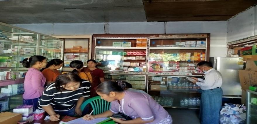 ထိုသို့ စစ်ဆေးရာတွင် ကုန်အညွှန်းအမှတ်အသားနှင့် စပ်လျဉ်း၍ မြန်မာဘာသာဖြင့် ဖော်ပြ ထားခြင်း ရှိ/မရှိ၊ မြန်မာနိုင်ငံစားသုံးသူ ကာကွယ်ရေး ကော်မရှင်မှ ထုတ်ပြန်ထားသည့် ညွှန်ကြား ချက်အမှတ် (၂/၂၀၁၉)နှင့် အညီပြည့်စုံစွာ ဖော်ထားမှုရှိ/မရှိ၊ ဆေးဝါးအတုများ၊ စံမညီဆေးဝါးများ၊ သက်တမ်းလွန်ဆေးဝါးများအား ဈေးကွက် အတွင်းရောင်းချခြင်းရှိ/မရှိ စစ်ဆေးခဲ့ရာ ပြည်စုံမှုရှိ ကြောင်း စစ်ဆေးတွေ့ရှိရပြီး ဆေးဆိုင်ပိုင်ရှင်များအား တရားဝင်တင်သွင်းထားသော ဆေးဝါးများ ကိုသာ ဆက်လက်ရောင်းချသွားရန်နှင့် စီးပွားရေးလုပ်ငန်းရှင်၏ တာဝန်များ၊ တားမြစ်ချက်များ၊ ပြစ်မှုပြစ်ဒဏ်များအား အသိပညာပေးဆွေးနွေးခဲ့ကြောင်း သိရှိရပါသည်။