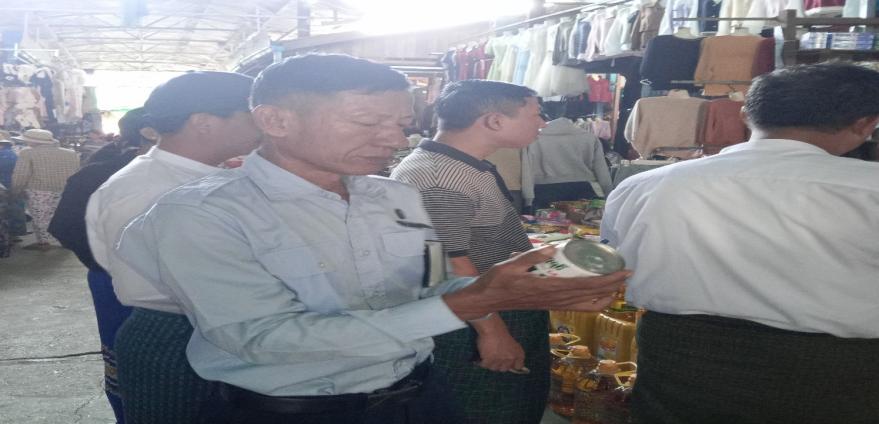 စားသုံးသူရေးရာဦးစီးဌာန၊ မိုးညှင်းခရိုင်ဦးစီးမှူးရုံးမှ စစ်ဆေးရေးမှူး ဦးကျော်မိုးလွင်သည် ၂၆.၁၁.၂၀၂၅ ရက်နေ့ ၀၉:၃၀ နာရီအချိန်တွင် မိုးညှင်းမြို့၊ စည်ပင်သာယာဈေး (၁) ရှိ ဒေါ်မြဆန်းလင်း (ကုန်စုံဆိုင်) သို့ ကုန်အညွှန်းအမှတ်အသားဖော်ပြခြင်းနှင့် ပတ်သက်၍ စားသုံးသူကာကွယ်ရေး ဥပဒေပါ ပြဌာန်းချက်များနှင့် ကိုက်ညီခြင်းရှိ/မရှိ ဈေးကွက်စောင့်ကြည့်စစ်ဆေးခဲ့ပါသည်။