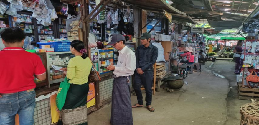 ထိုသို့ ပူးပေါင်းအဖွဲ့ဖြင့် ကွင်းဆင်းစစ်ဆေးရာတွင် စွယ်တော်ဆေးဆိုင်၊ ဦးမြင့်လွင်ဆေး ဆိုင်နှင့် ဦးမြဝိုင်း+ ဒေါ်တင်ရွှေတို့၏ ဆေးဆိုင်များတွင် ရောင်းချနေသော လူသုံးများသော ဆေးဝါးဖြစ်သည့် အာရုံကြောဆေး၊ သွေးကျဆေး၊ ဆီးချိုဆေး၊ အစာအိမ်ဆေး၊ နှလုံးသွေးကြေား ကျဉ်းဆေး၊ အကိုက်အခဲပျောက်ဆေး၊ ပိုးသတ်ဆေး၊ အားဆေးများ ပစ္စည်းလက်ကျန် ကျန်ရှိမှုအခြေအနေနှင့် ပစ္စည်းပြတ်လပ်မှုရှိ/ မရှိဆေးများအား ဝယ်ယူသည့် ကုမ္ပဏီအမည်နှင့် ဆေးဝါးများ၏ ဝယ်ယူဈေး ရောင်းချဈေးနှုန်းများ အမြတ်တင်ရောင်းချနေမှုများအား စာရင်းကောက်ယူ စစ်ဆေးခဲ့ကြပြီး မြို့နယ်တာဝန်ခံက ဆိုင်ရှင်များအား ဆေးဝါးများ သိုလှောင်သိမ်းဆည်း၍ ဈေးကစားခြင်း၊ ဈေးနှုန်းမြှင့်တင်ရောင်းချခြင်းများအား စစ်ဆေးတွေ့ရှိပါက ဥပဒေနှင့် အညီ အရေးယူဆောင်ရွက်သွားမည်ဖြစ်ကြောင်း အသိပေးခဲ့ကြောင်း သိရှိရပါသည်။