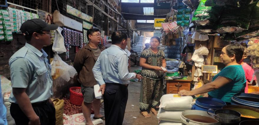 အဆိုပါကွင်းဆင်းဆောင်ရွက်ရာတွင် ဈေးကွက်အတွင်းရောင်းချနေသော ကုန်စည်များကို စားသုံးသူဘေးအန္တရာယ်ကင်းရှင်းစေရေးအတွက် သတ်မှတ်ထားသော ကုန်အညွှန်းအမှတ်အသားများပြည့်စုံစွာဖော်ပြထားမှုရှိ/မရှိစစ်ဆေးခြင်း၊ ဆိုင်ပိုင်ရှင်များအား မြန်မာဘာသာဖြင့် ဖော်ပြထားမှု မရှိသောကုန်စည်များကို ရောင်းချခြင်းမပြုရန်၊ စားသုံးသူကာကွယ်ရေး ဥပဒေပါပြဌာန်းချက်များကို လိုက်နာဆောင်ရွက်ကြရန် အသိပညာပေးပြောကြားခဲ့ကြောင်း သိရှိရ ပါသည်။