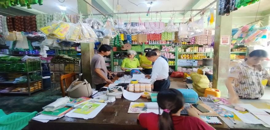 ထိုသို့ ကွင်းဆင်းစစ်ဆေးရာတွင် ဈေးနှုန်းကြီးမြှင့်မှု မရှိစေရေးနှင့် ကုန်ဈေးနှုန်းများ တည်ငြိမ် စေရေးအတွက် ကြပ်မတ်ဆောင်ရွက်လျက်ရှိရာ ဈေးနှုန်းမြှင့်တင် ရောင်းချခြင်း၊ သိုလှောင်ခြင်း၊ ဖြန့်ဖြူးရောင်းချမှုများ ရှိ/မရှိ စစ်ဆေးခဲ့ပြီး အခန်း(၁၈)ပါကုန်ညွှန်းအမှတ်အသားများပြည့်စုံခြင်း ရှိ/မရှိ ကွင်းဆင်းစစ်ဆေးခဲ့ရာ ကုန်ညွှန်းအမှတ်အသားများ ပြည့်စုံခြင်းရှိသဖြင့် ကုန်ညွှန်းအမှတ်အသား များမပြည့်စုံသည့် ကုန်ပစ္စည်းများကို မရောင်းချရန် အသိပညာပေးကွင်းဆင်းခဲ့ကြောင်း သိရှိရပါသည်။