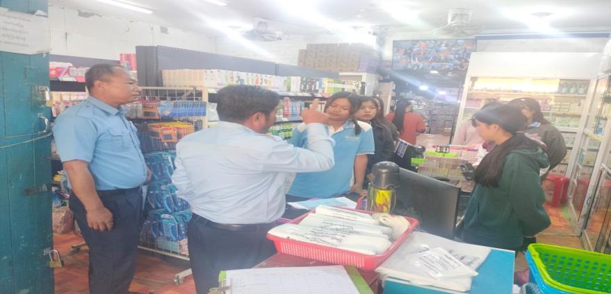 ထိုသို့ ကွင်းဆင်းစစ်ဆေးရာ၌ တာဝန်ရှိသူများသည် Online စနစ်ဖြင့် ရောင်းဝယ်မှု ပြုလုပ်ရာတွင် သက်ဆိုင်ရာဌာန၏ ထောက်ခံချက်မှတ်ပုံတင်ပြုလုပ်၍ စနစ်တကျဖြန့်ဖြူး ရောင်းဝယ်မှုပြုလုပ်ရန်၊ အရေးကြီးကုန်စည်နှင့်ဝန်ဆောင်မှုဥပဒေပါအတိုင်း လိုက်နာဆောင်ရွက် ရန်နှင့် စားသုံးသူကာကွယ်ရေးဥပဒေ အခန်း (၁၀)ပါ “စီးပွားရေးလုပ်ငန်းရှင်၏တာဝန်များ”ကို လိုက်နာဆောင်ရွက်ရန် အသိပညာပေးခြင်းလုပ်ငန်းများ ဆောင်ရွက်ခဲ့ပါသည်။