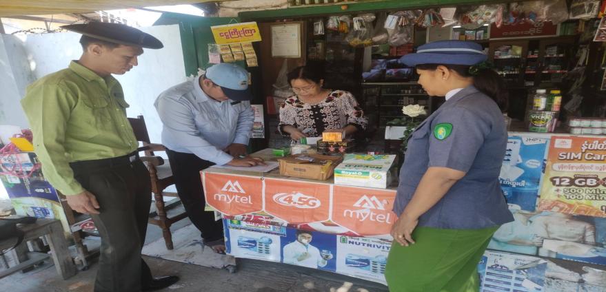 ထိုသို့ကွင်းဆင်းခဲ့ရာတွင် စားသုံးသူမိဘပြည်သူများ ဘေးအန္တရာယ်ကင်းရှင်းစေရန်အတွက် ဈေးကွက်အတွင်းရောင်းချနေသော အိမ်သုံးဆေးဝါးများတွင် အစားအသောက်နှင့် ဆေးဝါးကွပ်ကဲရေး ဦးစီးဌာန၏ ထောက်ခံချက်မရှိသော၊ အရည်အသွေးနှင့် စံချိန်စံညွှန်းစစ်ဆေးမှုခံယူထားခြင်း မရှိသည့် အာမခံချက်မရှိသော တရားမဝင်ဆေးဝါးများ ရောင်းချခြင်းမရှိကြောင်း၊ အိမ်သုံးဆေးဝါးများ ပစ္စည်း ပြတ်လပ်မှုမရှိပဲ ပုံမှန်အတိုင်းအရောင်းအဝယ်ဖြစ်လျက်ရှိပြီး ဈေးနှုန်းမြှင့်တင်ရောင်းချမှု မရှိကြောင်း စစ်ဆေးတွေ့ရှိခဲ့ပါသည်။ ထို့အပြင် စီးပွားရေးလုပ်ငန်းရှင်များအနေဖြင့် ထုတ်ပြန်ထားသော ညွှန်ကြား ချက်များအတိုင်း လိုက်နာဆောင်ရွက်ရန်၊ ကုန်စည်နှင့်စပ်လျဉ်း၍ အာမခံချက်ပေးရာတွင် စားသုံးသူ များစိတ်ကျေနပ်မှုရှိစေရေးနှင့် သတ်မှတ်အရည်အသွေး ပြည့်မီသောကုန်စည်များကိုသာရောင်းချရန် စသည် တို့ကို အသိပညာပေးဆွေးနွေးခဲ့ပြီး၊ အရောင်းဆိုင် (၆)ဆိုင်အား ကွင်းဆင်းစစ်ဆေးခြင်းများ ဆောင်ရွက်ခဲ့ကြကြောင်း သိရှိရပါသည်။