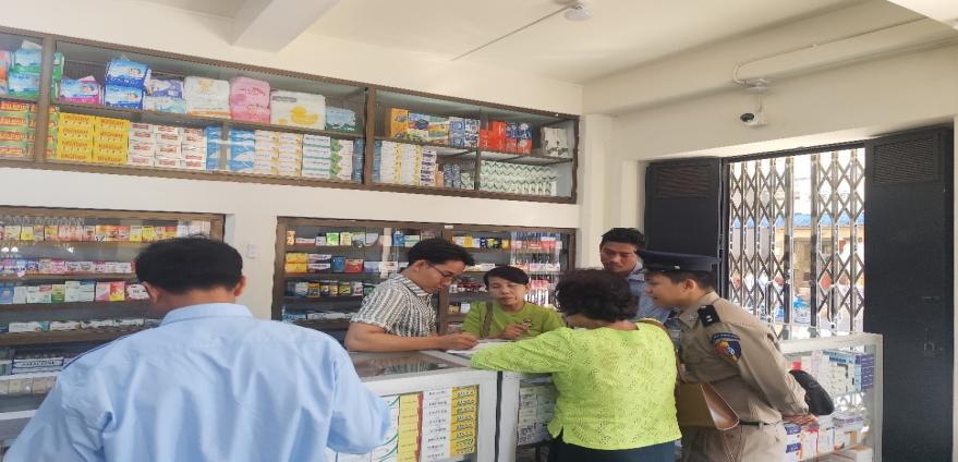 ကွင်းဆင်းစစ်ဆေးရာတွင် ဆေးစျေးနှုန်းများအား စုံစမ်းစစ်ဆေးခဲ့ပြီး ဆေးနှင့်ဆေးပစ္စည်းများ ပြတ်လပ်မှုမရှိစေရေး၊ ဘေးအန္တရာယ်ကင်းသော ထုတ်ကုန်များသုံးစွဲရေး၊ သက်တမ်းလွန်ဆေးဝါးများ ရောင်းချမှုမရှိစေရေး၊ ဒေသတွင်းဖြစ်သင့်ဖြစ်ထိုက်သည့်စျေးနှုန်းများဖြင့် ရောင်းဝယ်ဖောက်ကား ခြင်းရှိ/မရှိနှင့် ကုန်အညွှန်းအမှတ်အသားဖော်ပြပါရှိသော ဆေးဝါးများရောင်းချမှုရှိစေရေး ကွင်းဆင်း စစ်ဆေးခဲ့ကြောင်း သိရှိရပါသည်။