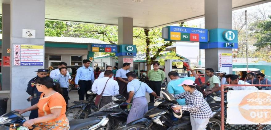 လက်ရှိကမ္ဘာ့နိုင်ငံရေးအခြေအနေများအရ လောင်စာဆီတင်သွင်းသည့် သင်္ဘောများ သယ်ယူ ပို့ဆောင်ရာ ရေလမ်းကြောင်းတစ်လျှောက်တွင် အတားအဆီးအဟန့်အတားပိတ်ဆို့မှုများဖြစ်ပေါ် လျက်ရှိသဖြင့် စက်သုံးဆီများခြိုးခြံချွေတာသုံးစွဲစေရေးနှင့် ဖူလုံမှုရှိစေရေးအတွက် မော်တော်ယာဉ် များ၊ ဆိုင်ကယ်များအား လစဉ် စုံရက်၊ မရက်များခွဲ၍ ယာဉ်၏ စုံနံပါတ်၊ မ နံပါတ်အလိုက် အသုံးပြု စေရန် ထုတ်ပြန်ညွှန်ကြားချက်များအား အများပြည်သူ သိရှိလိုက်နာမှုရှိစေရေး၊ စက်သုံးဆီအရောင်း ဆိုင်များအနေဖြင့် သတ်မှတ်ချက်များနှင့်အညီ ရောင်းချမှုရှိစေရေး၊ စက်သုံးဆီလုပ်ငန်းရှင်များသာမက အများပြည်သူအနေဖြင့် စက်သုံးဆီများဝယ်ယူစုဆောင်းခြင်းနှင့် ဈေးနှုန်းမြှင့်တင်၍ ရောင်းချခြင်းများ လုံးဝမပြုလုပ်ရန်၊ဖောက်ဖျက်ကျူးလွန်ပါကတည်ဆဲဥပဒေများနှင့်အညီအရေးယူဆောင်ရွက်သွားမည်ဖြစ်ကြောင်းထုတ်ပြန်ညွှန်ကြားချက်များအား သိရှိလိုက်နာစေရေး ကွင်းဆင်းကြီးကြပ်မှုများ ဆောင်ရွက်ခဲ့ကြကြောင်း သိရပါသည်။