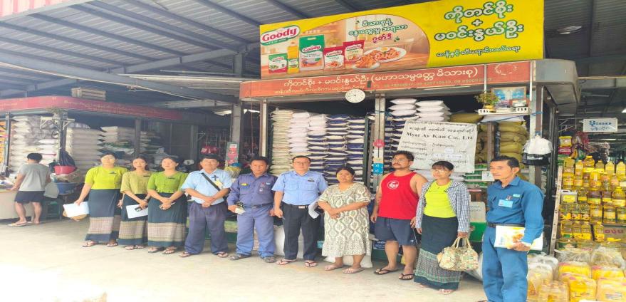 ကွင်းဆင်းစစ်ဆေးရာ၌ ဈေးကွက်အတွင်း ရောင်းချနေသောကုန်စည်နှင့် ဝန်ဆောင်မှုများတွင် စားသုံးသူမိဘပြည်သူများ ဘေးအန္တရာယ်ကင်းရှင်းစေရန်အတွက် မြန်မာနိုင်ငံစားသုံးသူကာကွယ်ရေး ကော်မရှင်မှ ထုတ်ပြန်ကြော်ငြာထားသော ညွှန်ကြားချက်အမှတ်(၂/၂၀၁၉)နှင့်အညီ မြန်မာဘာသာဖြင့် ပြည်စုံစွာဖော်ပြထားသော ကုန်စည်များကိုသာရောင်းချရန်နှင့် စီးပွားရေးလုပ်ငန်းရှင်များအနေ ဖြင့် ထုတ်ပြန်ကြေညာထားသောညွှန်ကြားချက်များအတိုင်း လိုက်နာဆောင်ရွက်ရန်၊ ကုန်စည်နှင့်စပ် လျဉ်း၍ အာမခံချက်ပေးရာတွင် စားသုံးသူများ စိတ်ကျေနပ်မှုရှိစေရေးနှင့် သတ်မှတ်အရည်အသွေး ပြည့်မီသော ကုန်စည်များကိုသာ ရောင်းချရန် ဆွေးနွေးပြောကြား၍ ဈေးကွက်စောင့်ကြည့် စစ်ဆေးခဲ့ကြောင်း သတင်းရရှိပါသည်။