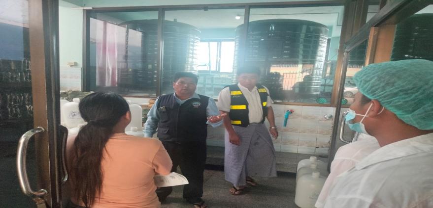 ထိုသို့ ဈေးကွက်စောင့်ကြည့်စစ်ဆေးခြင်းဆောင်ရွက်ရာတွင် “စိုင်းတစ်(ပ်)” အမှတ်တံဆိပ် သောက်ရေသန့် ထုတ်လုပ်ရေး လုပ်ငန်းအနေဖြင့် သက်ဆိုင်ရာဌာန၏ ထောက်ခံချက်များနှင့် ကုန်အညွှန်းအမှတ်အသားပြည့်စုံစွာ ဖော်ပြထားသည်ကို တွေ့ရှိရပါသည်။ ဆက်လက်၍ စစ်ဆေးရေးမှူးနှင့် ဌာနဆိုင်ရာ တာဝန်ရှိသူများသည် စားသုံးသူကာကွယ်ရေးဥပဒေ အခန်း (၁၀)ပါ “စီးပွားရေးလုပ်ငန်းရှင်၏တာဝန်များ”ကို သိရှိလိုက်နာဆောင်ရွက်စေရန် အသိပညာပေးခြင်း လုပ်ငန်း ဆောင်ရွက်ခဲ့ပါသည်။