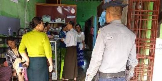 ဧရာဝတီတိုင်းဒေသကြီး၊ မအူပင်ခရိုင်၊ ညောင်တုန်းမြို့နယ်၊ ၁၂ရပ်ကွက် ဆေးရုံအရှေ့ရှိ ဆေးအရောင်းဆိုင်များ သတ်မှတ်ချက်နှင့်ညီ/မညီ ကျန်းမာရေးဝန်ကြီးဌာနက သတ်မှတ်ချက်များအတိုင်း ရောင်းချခြင်း ရှိ/မရှိ နှင့် စားသုံးသူရေးရာဦးစီးဌာန၏ ကုန်အညွှန်းအမှတ်အသားဖော်ပြချက်နှင့် ကုန်စည်များ အပေါ်တားမြစ်မိန့် ဈေးနှုန်းမြင့်တင်ရောင်းချမှု ရှိမရှိတို့ကို ကွင်းဆင်းစစ်ဆေးခြင်းလုပ်ငန်းကို