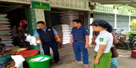 မြောင်းမြခရိုင် ဝါးခယ်မမြို့နယ် ဈေးရပ်ကွက်ရှိဆန်ဆိုင်များအား သတ်မှတ်ရည်ညွှန်းဈေးဖြင့် ရောင်းချမှု ရှိ/မရှိ ကွင်းဆင်းစစ်ဆေး