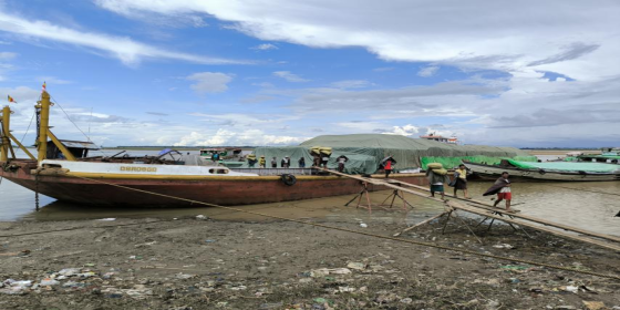 ဆန်တန်ချိန် (၁၅၀၀) အား ပြည်ပသို့တင်ပို့ရန်အတွက် ဟင်္သာတဆိပ်ကမ်းမှ သင်္ဘောတင်