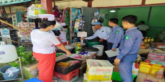မြန်အောင်မြို့နယ် နေခြည်ဈေးအတွင်းရှိ စားသောက်ကုန်စည်များအား ဈေးကွက်စောင့်ကြည့်စစ်ဆေးခြင်း
