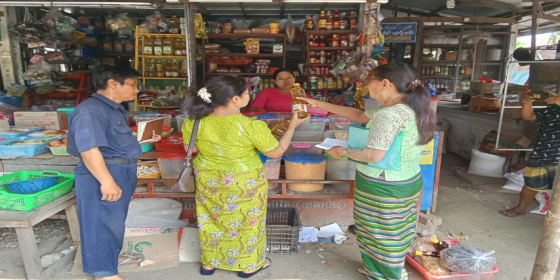 ယုဇနဥယျာဉ်မြို့တော်ဈေးအတွင်းရှိ စားသောက်ကုန်နှင့် လူသုံးကုန်ပစ္စည်းအရောင်းဆိုင်များအား ဈေးကွက်စောင့်ကြည့်စစ်ဆေးခြင်း