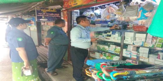 မြောင်းမြခရိုင်၊ ဝါးခယ်မမြို့နယ်၊ မြို့မဈေးအတွင်းရှိ အလှကုန်ဆိုင်များအား ကွင်းဆင်းစစ်ဆေး