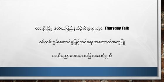 လားရှိုးမြို့၊ ဒုတိယပြည်နယ်ဦးစီးမှူးရုံးတွင် Thursday Talk ဝန်ထမ်းစွမ်းဆောင်မှုမြှင့်တင်ရေး အထောက်အကူပြု အသိပညာပေးဟောပြောဆောင်ရွက်