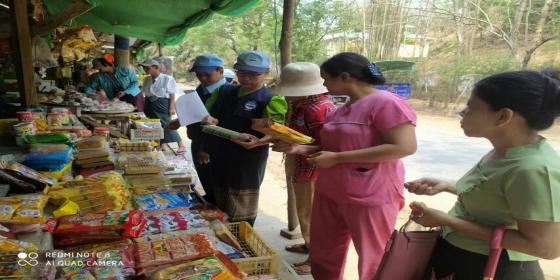 သရက်ခရိုင်၊ ကံမမြို့တွင် စားသုံးသူများဘေးကင်းလုံခြုံစိတ်ချရမှုရှိစေရေး ဈေးကွက်စောင့်ကြည့် စစ်ဆေးခြင်းနှင့် အသိပညာပေးဟောပြောပွဲ (Talk Show) ဆောင်ရွက်ခြင်း